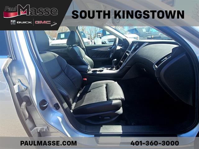 2018 INFINITI Q50 3.0T SportExperience luxury and performance in this Silver 2018 INFINITI Q50 AWD 3.0T Sport. Powered by a 3.0L Twin Turbo V6 delivering 300hp and paired with a 7-speed shiftable automatic transmission, this Q50 offers exhilarating acceleration and precise handling with its advanced AWD system. Enjoy premium features including dual infotainment screens (7" & 8") with InTouch Apps, Bluetooth® connectivity, Bose premium audio, and SiriusXM satellite radio. The interior boasts leather-trimmed sport bucket seats with power and memory adjustments, a power tilt/telescopic steering wheel, and a power glass moonroof. Safety is prioritized with a rearview camera, multiple airbags, stability control, and a tire pressure monitoring system. Striking aluminum alloy wheels, LED headlights, and a sporty rear spoiler complete the package. Meticulously maintained, this Q50 blends technology, comfort, and driving excitement.
