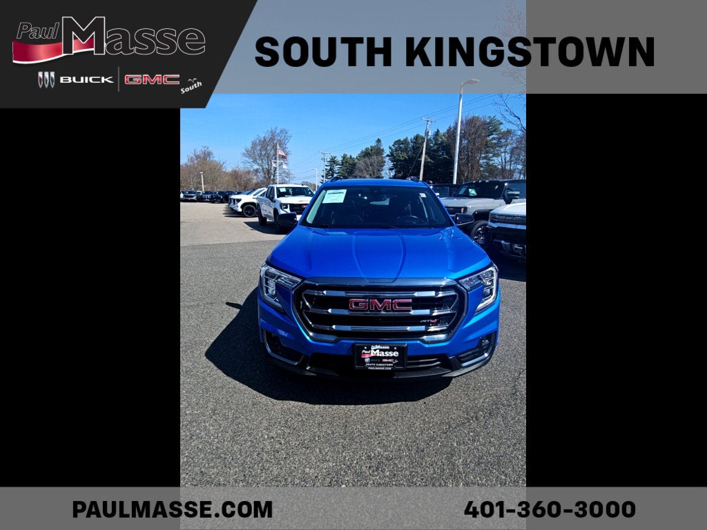 Discover adventure with the 2024 GMC Terrain AWD AT4 in striking Riptide Metallic. Built for drivers who value performance, safety, and technology, this SUV features an off-road tuned suspension, all-wheel drive, and Hill Descent Assist for confident handling on any terrain. Stay connected with an 8-inch GMC Infotainment System, wireless Apple CarPlay/Android Auto, Amazon Alexa compatibility, and Wi-Fi hotspot capability. Enjoy heated front seats, a heated steering wheel, power-adjustable driver and passenger seats with lumbar support, and leather-trimmed upholstery for comfort on every trip. Advanced safety features include Front Automatic Emergency Braking, Lane Keeping Assist, Blind Spot Monitoring, Rear Cross Traffic Alert, Rear Parking Sensors, and a Rearview Camera. The Terrain AT4 also offers remote engine start, power liftgate, adaptive cruise control, and dual-zone automatic climate control. With bold black exterior accents and roof rails, this SUV is as stylish as it is functional. Experience the perfect blend of rugged capability and modern convenience-test drive the 2024 GMC Terrain AT4 today.