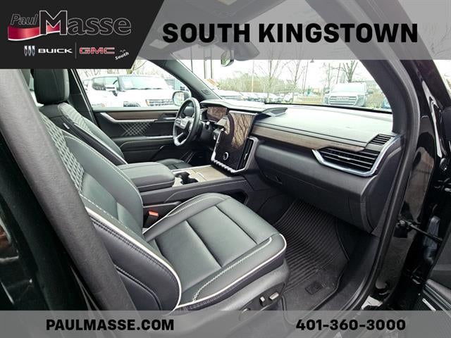Experience luxury and capability with the Black 2025 GMC Acadia 4x4 Denali. This sophisticated SUV combines powerful performance from its 2.5L Turbo I4 engine and 8-speed shiftable automatic transmission with advanced features for comfort and safety. Enjoy a spacious interior with leather-trimmed upholstery, heated and ventilated seats, heated steering wheel, and captain's chairs in the second row. Stay connected with a 15-inch infotainment screen, Google Built-In, wireless Apple CarPlay and Android Auto, and a Bose premium sound system. Safety is paramount with adaptive cruise control, lane keeping assist with blind spot integration, rear cross traffic alert, surround view camera, intersection/junction pre-collision systems, and front/rear automatic emergency braking. Convenience features include a power liftgate, remote engine start, panoramic sunroof, and customizable digital instrument cluster. This Acadia Denali is ready for family adventures or daily commutes with third-row seating, Class III trailer hitch, and advanced trailer backup guidance. Drive with confidence and style in this top-tier SUV.